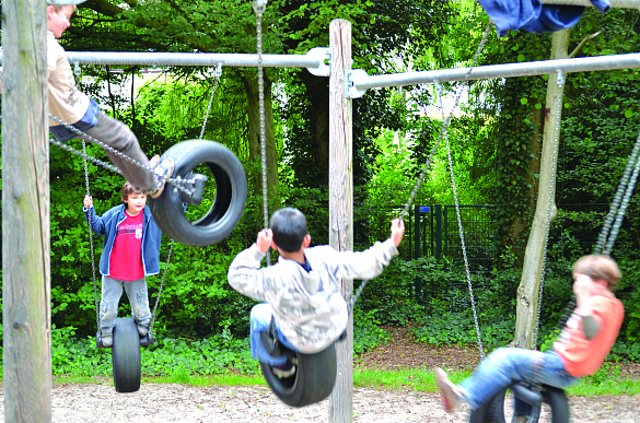 | Außenanlagen | Spiellandschaft mit Weidentipi, Fußballplatz, Rodelberg, Klettergerüsten, Schaukeln und Turnstangen, Reifenschaukel, Kletterwand |